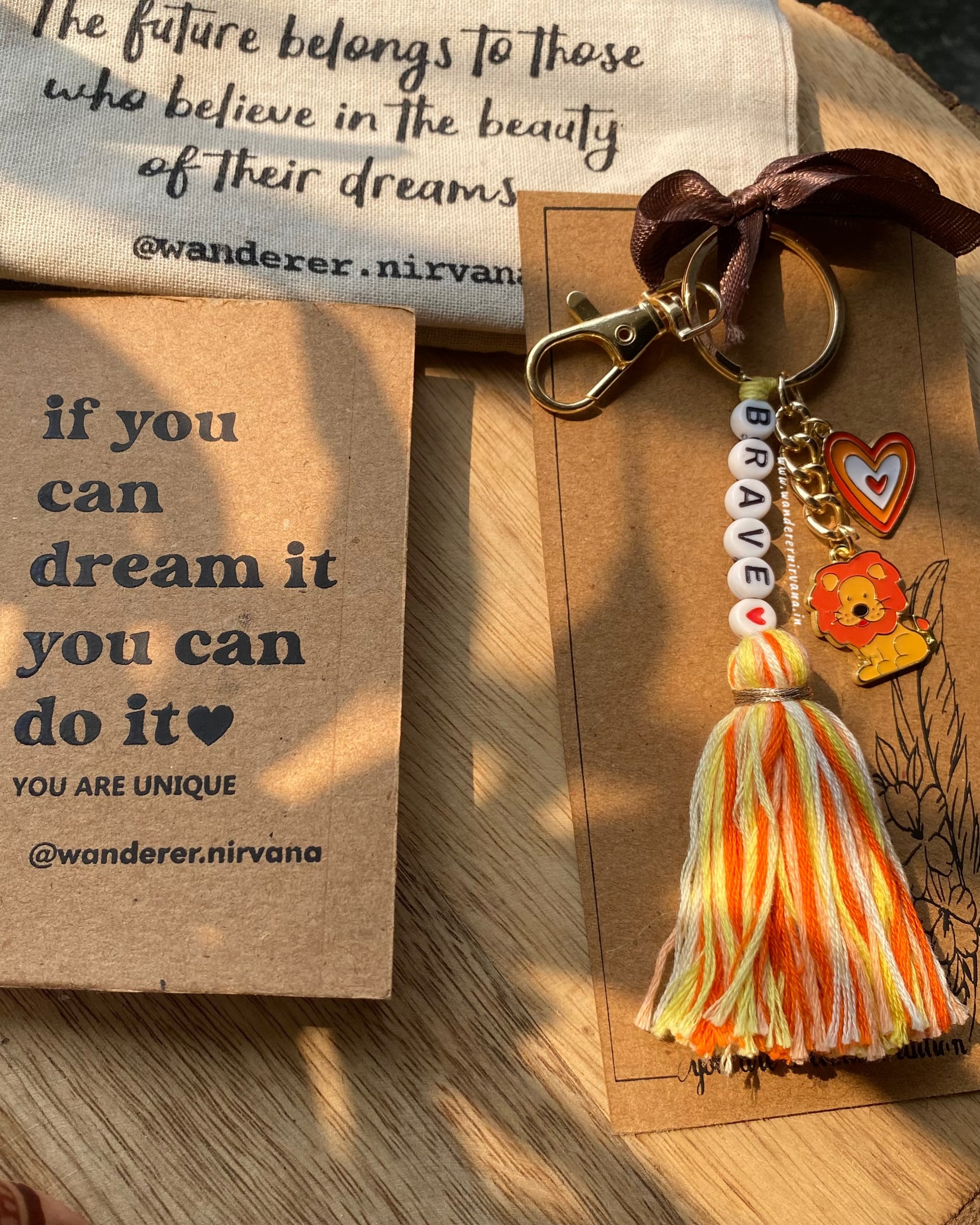 Wanderer Nirvana products are crafted using high-quality materials sourced from sustainable and ethical suppliers. Our dream catchers are made with artificial feathers, beads, and intricate weaving designs, while our keychains feature durable metals and vibrant accents.