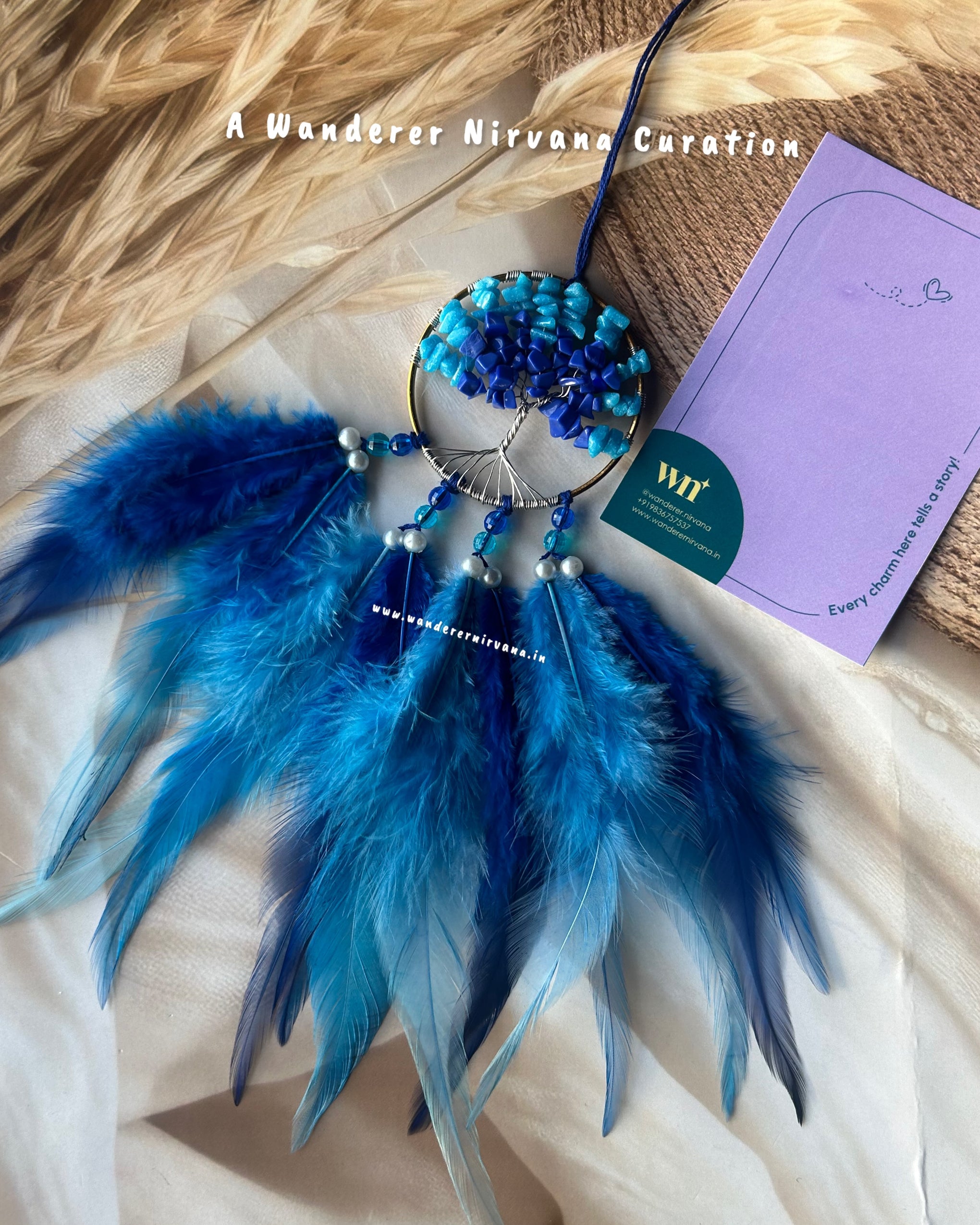 To prolong the life of your Wanderer Nirvana products, we recommend handling them with care and avoiding exposure to excessive moisture or direct sunlight. For dreamcatchers, gently dust them with a soft brush or cloth to remove any debris, and periodically fluff the feathers to maintain their shape. For keychains and accessories, store them in a cool, dry place when not in use to prevent tarnishing or damage.