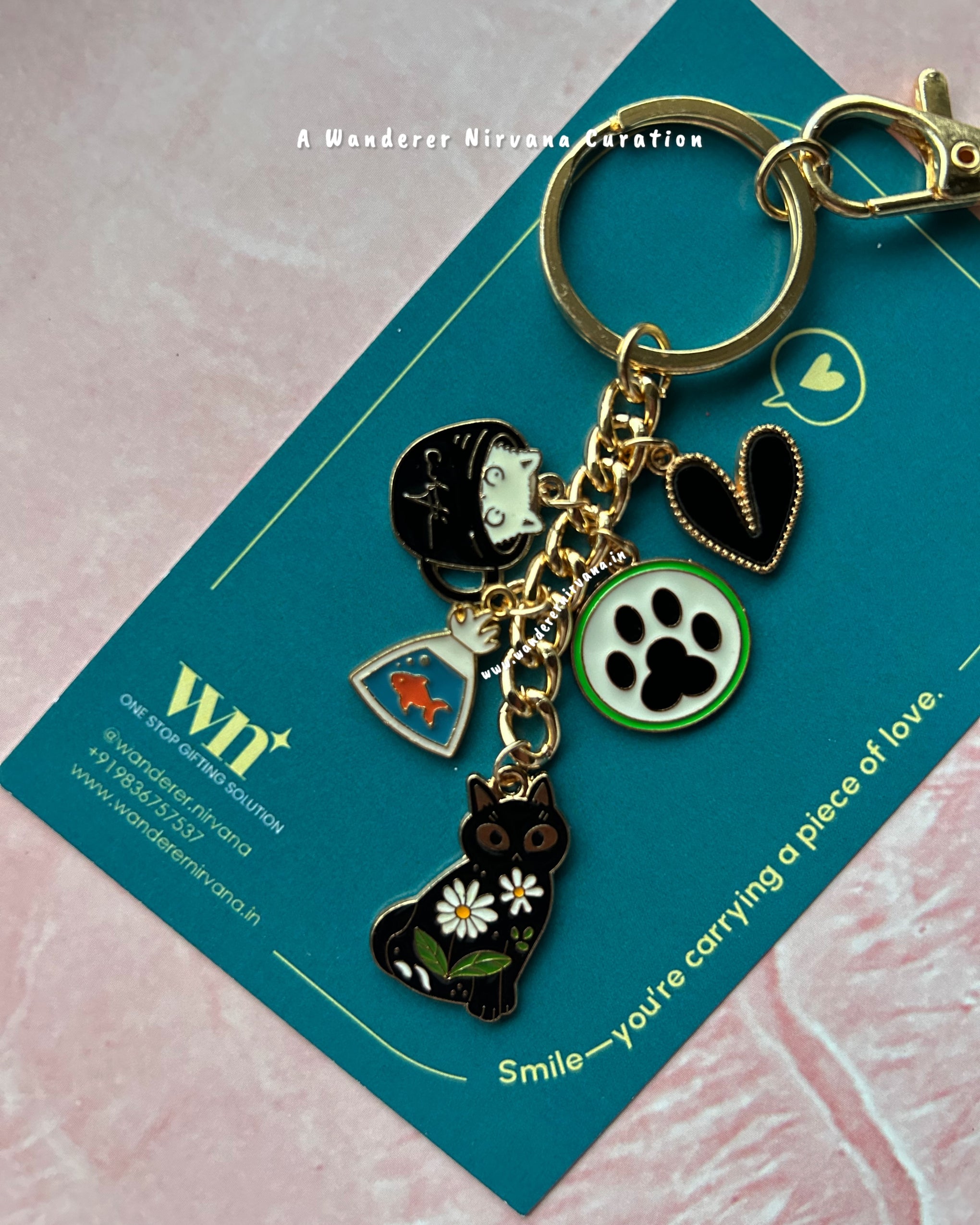 Cat - Fish Heart Keychain