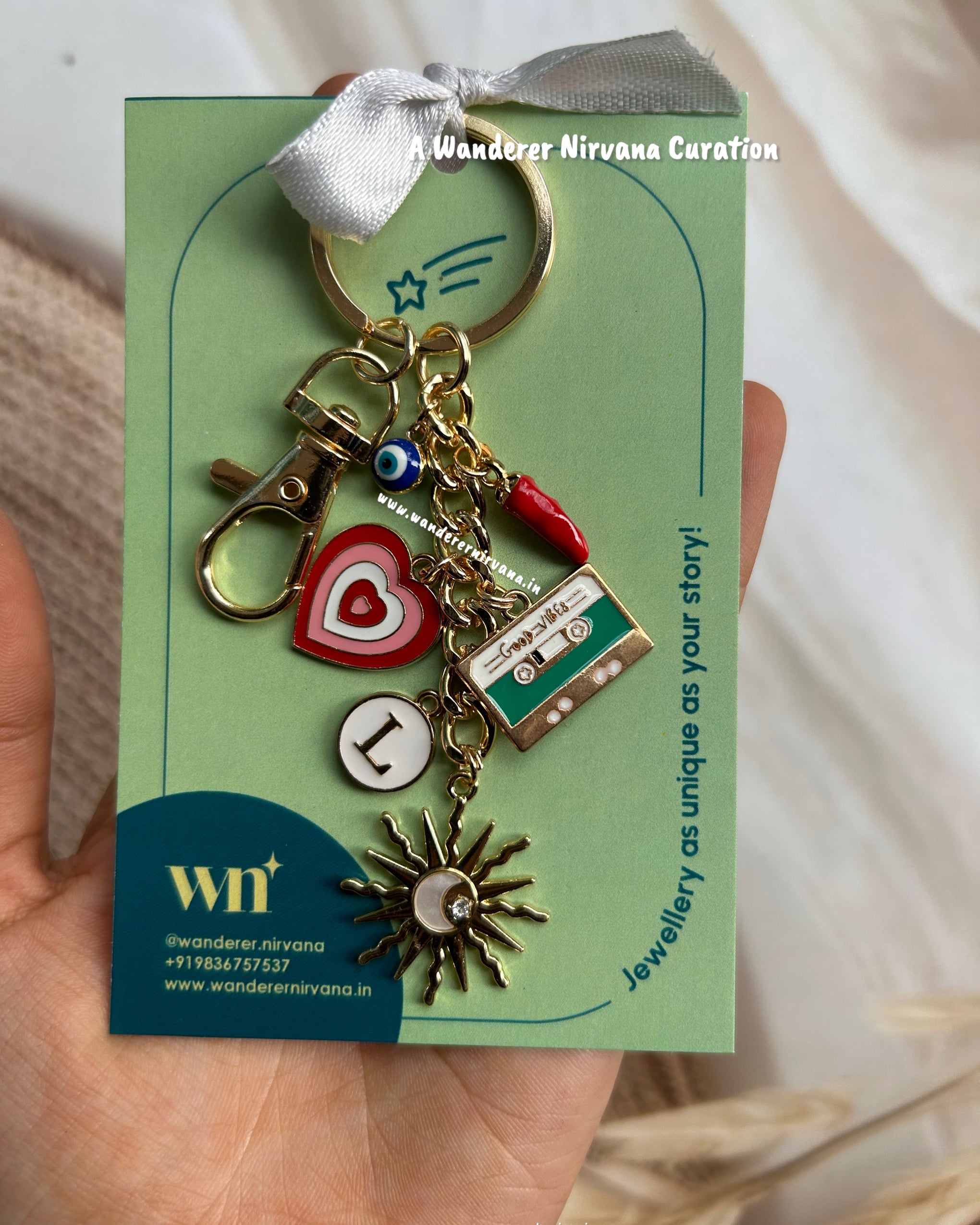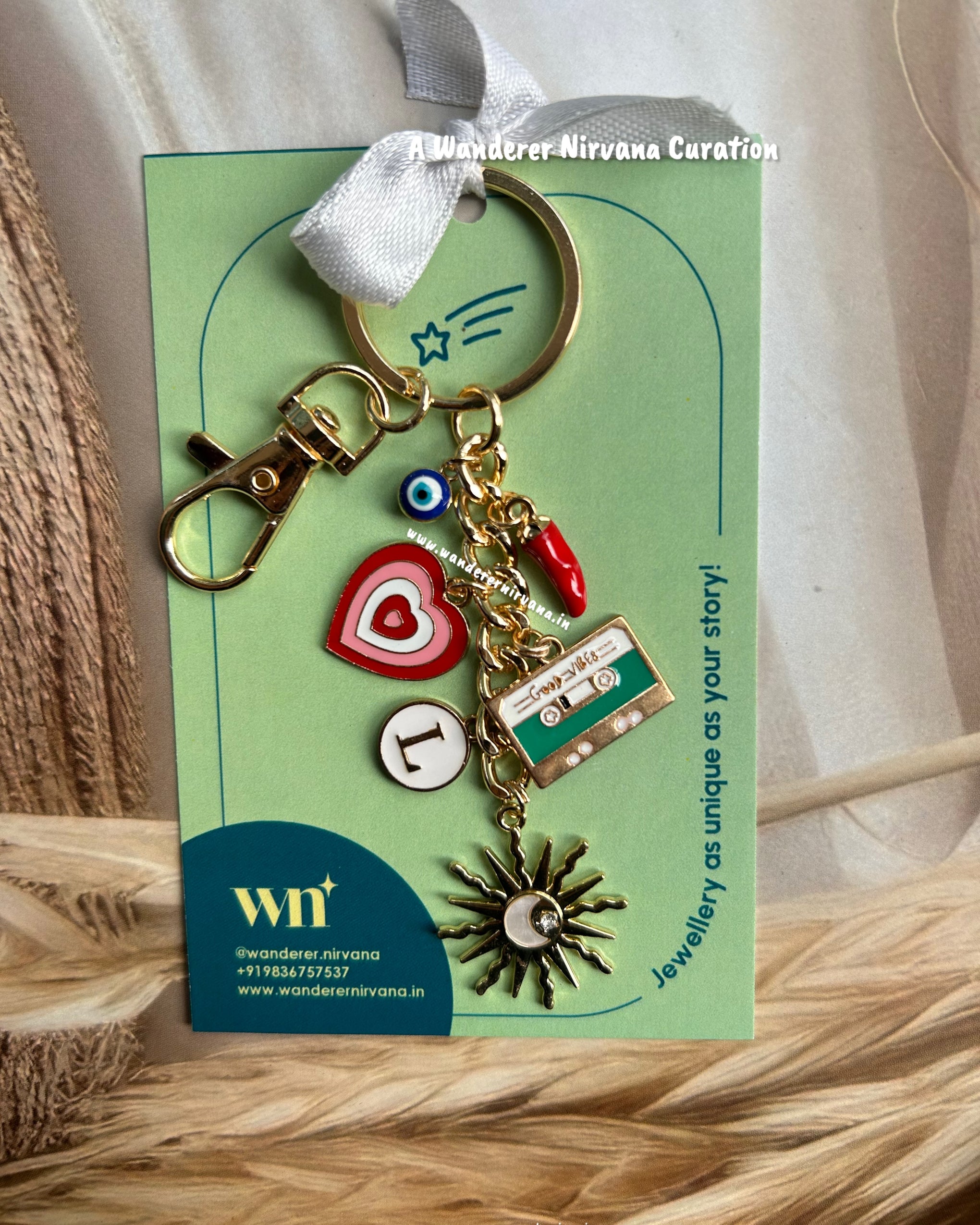 Sun Chilly Evileye Heart Personalised Good Vibes Keychain