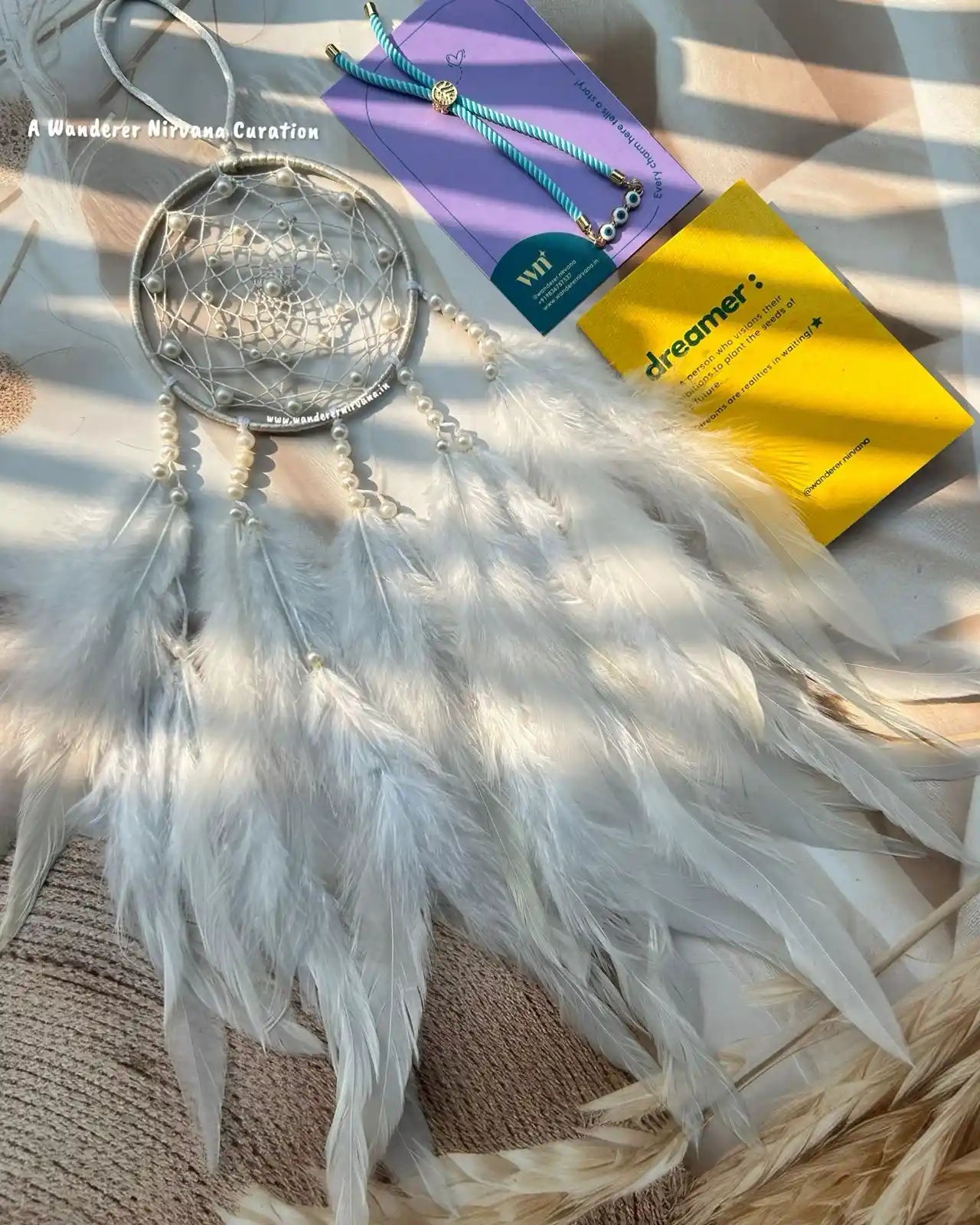 Wanderer Nirvana products are crafted using high-quality materials sourced from sustainable and ethical suppliers. Our dream catchers are made with artificial feathers, beads, and intricate weaving designs, while our keychains feature durable metals and vibrant accents.