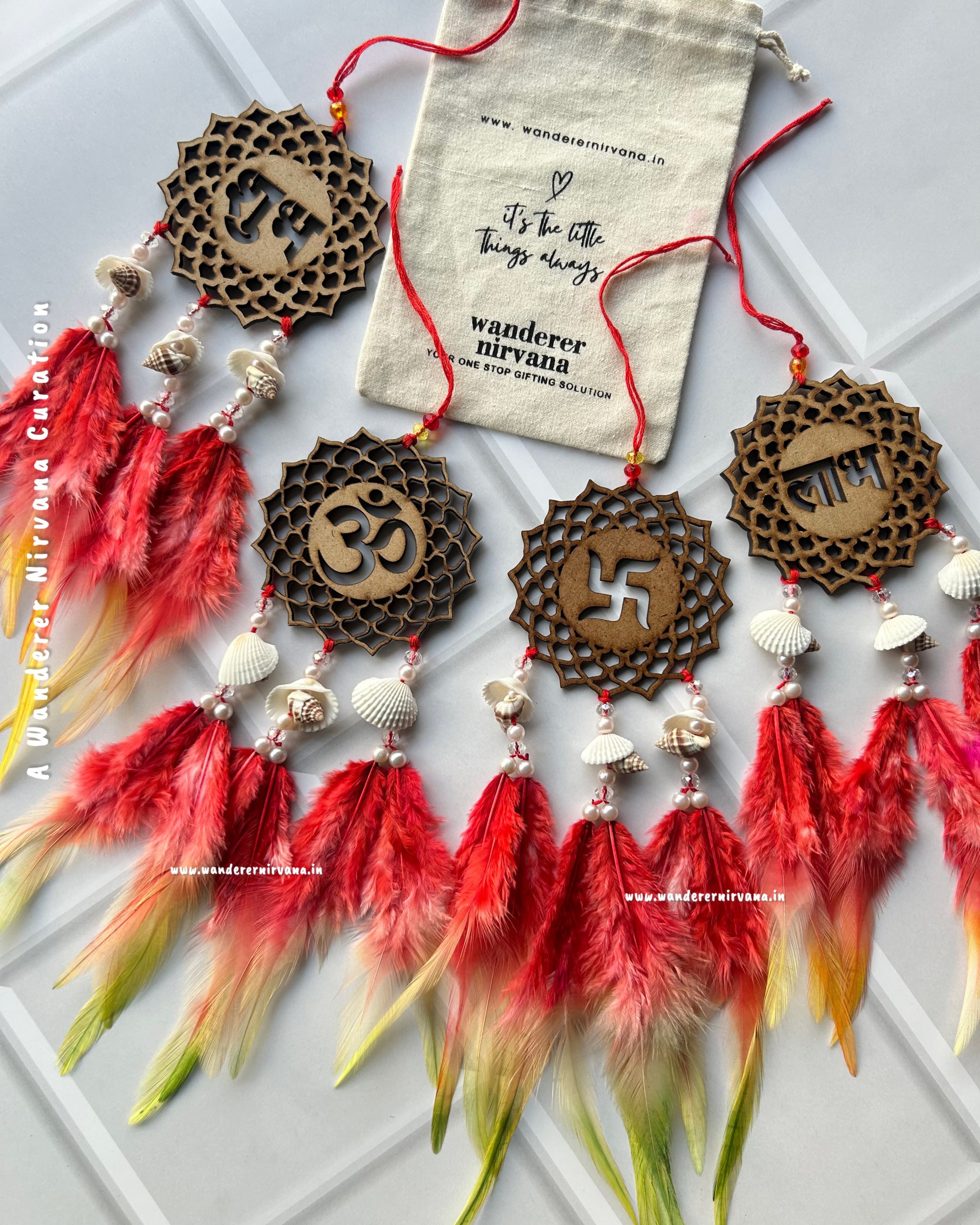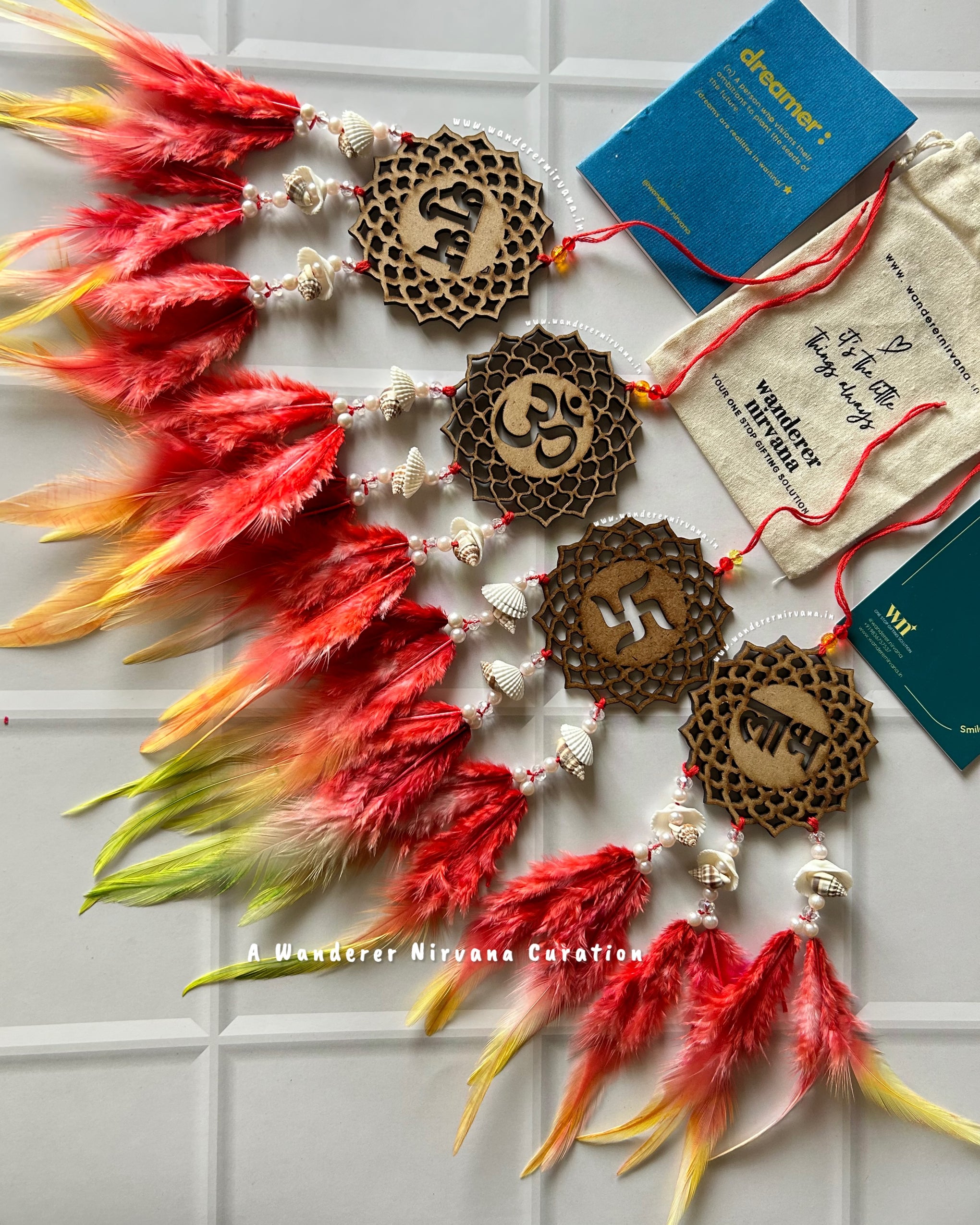 Wanderer Nirvana products are crafted using high-quality materials sourced from sustainable and ethical suppliers. Our dream catchers are made with artificial feathers, beads, and intricate weaving designs, while our keychains feature durable metals and vibrant accents.