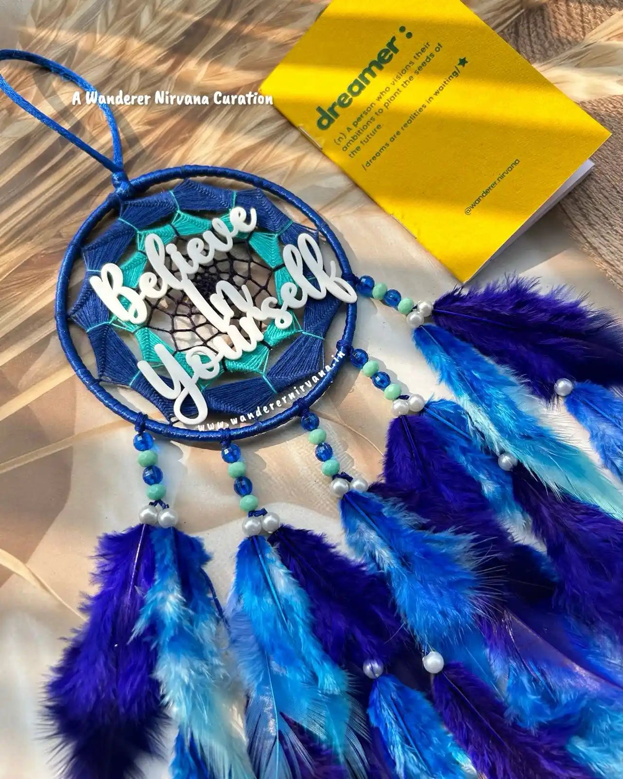 Wanderer Nirvana products are crafted using high-quality materials sourced from sustainable and ethical suppliers. Our dream catchers are made with artificial feathers, beads, and intricate weaving designs, while our keychains feature durable metals and vibrant accents.