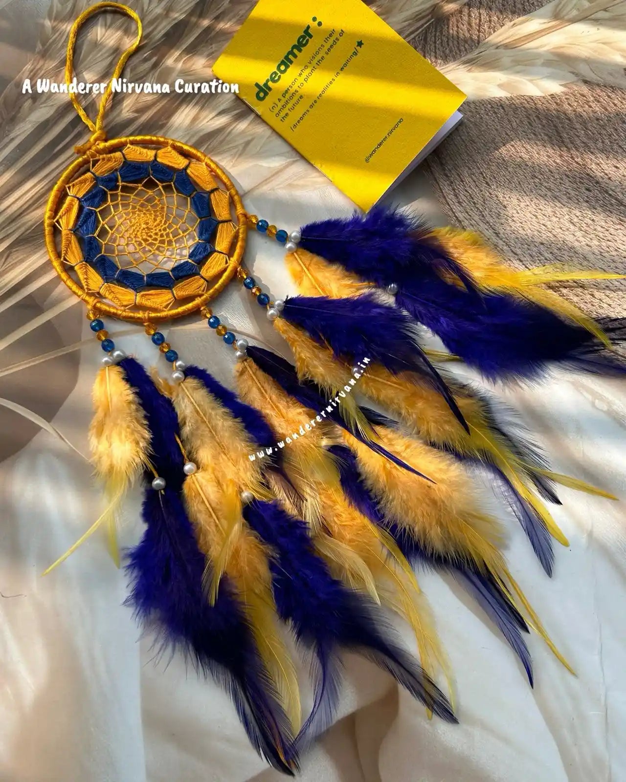 Wanderer Nirvana products are crafted using high-quality materials sourced from sustainable and ethical suppliers. Our dream catchers are made with artificial feathers, beads, and intricate weaving designs, while our keychains feature durable metals and vibrant accents.