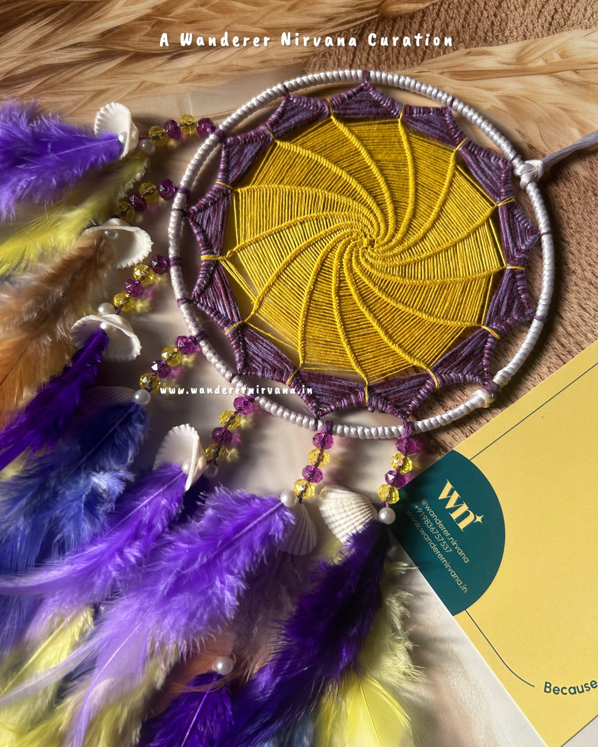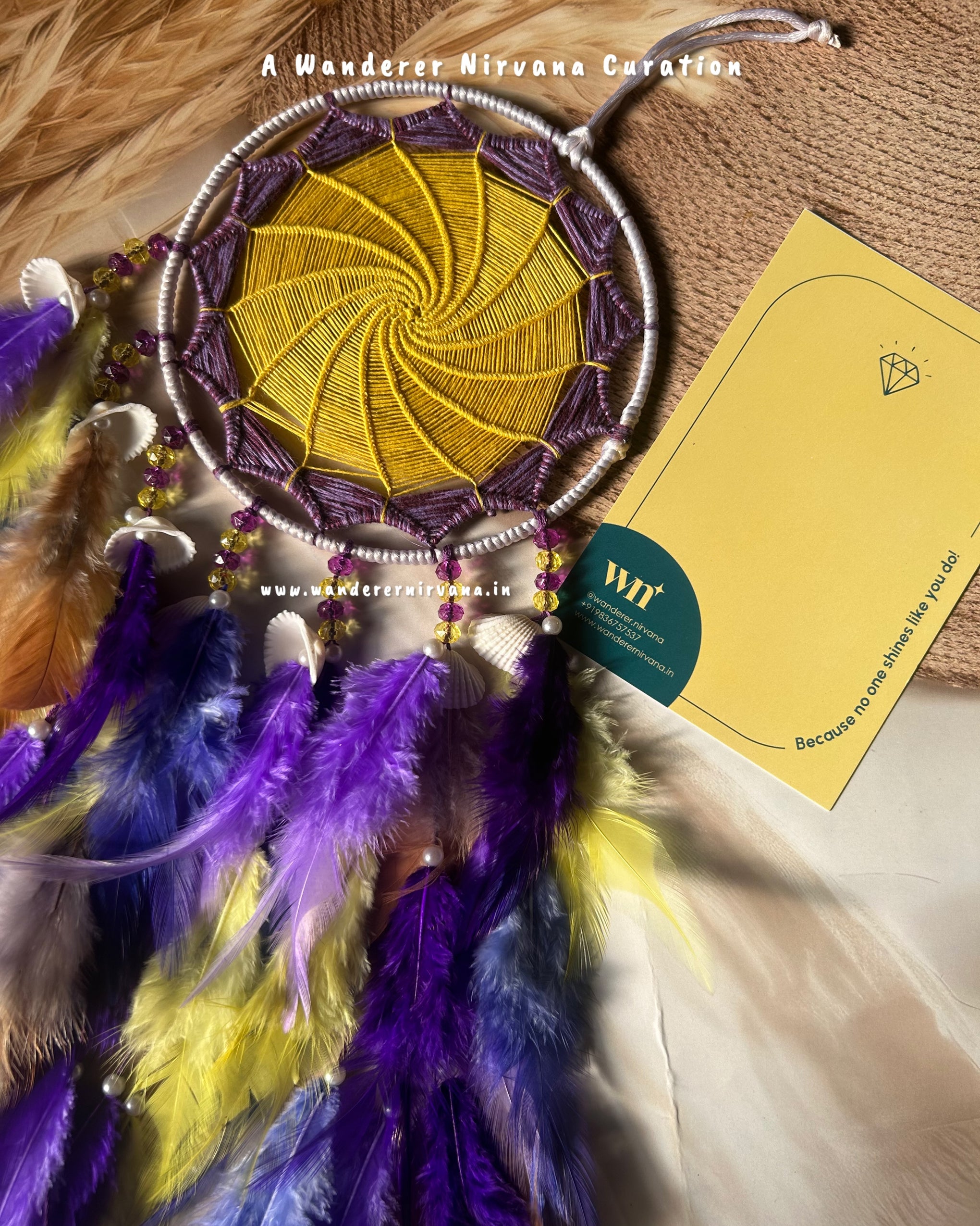 Wanderer Nirvana products are crafted using high-quality materials sourced from sustainable and ethical suppliers. Our dream catchers are made with artificial feathers, beads, and intricate weaving designs, while our keychains feature durable metals and vibrant accents.