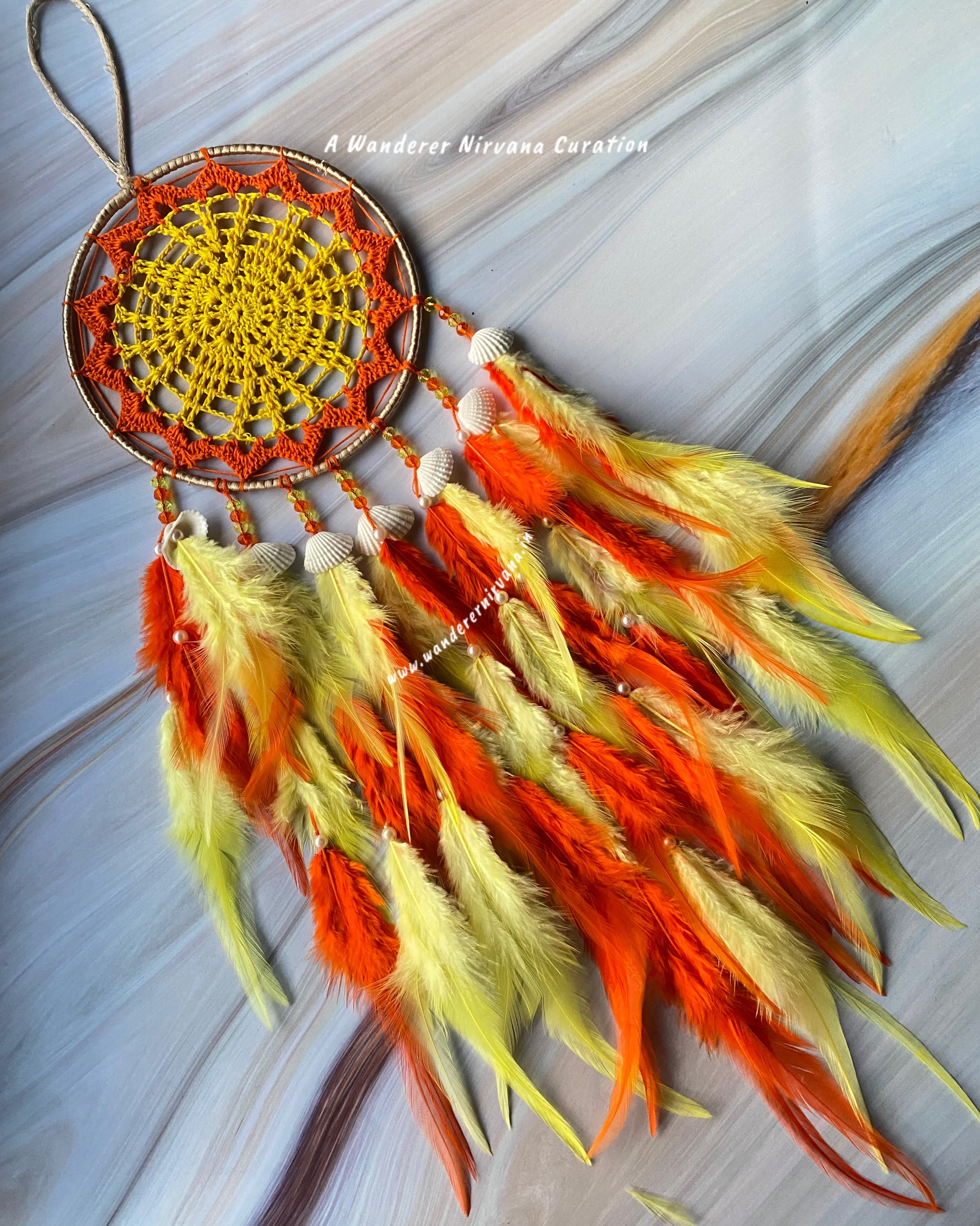 Wanderer Nirvana products are crafted using high-quality materials sourced from sustainable and ethical suppliers. Our dream catchers are made with artificial feathers, beads, and intricate weaving designs, while our keychains feature durable metals and vibrant accents.