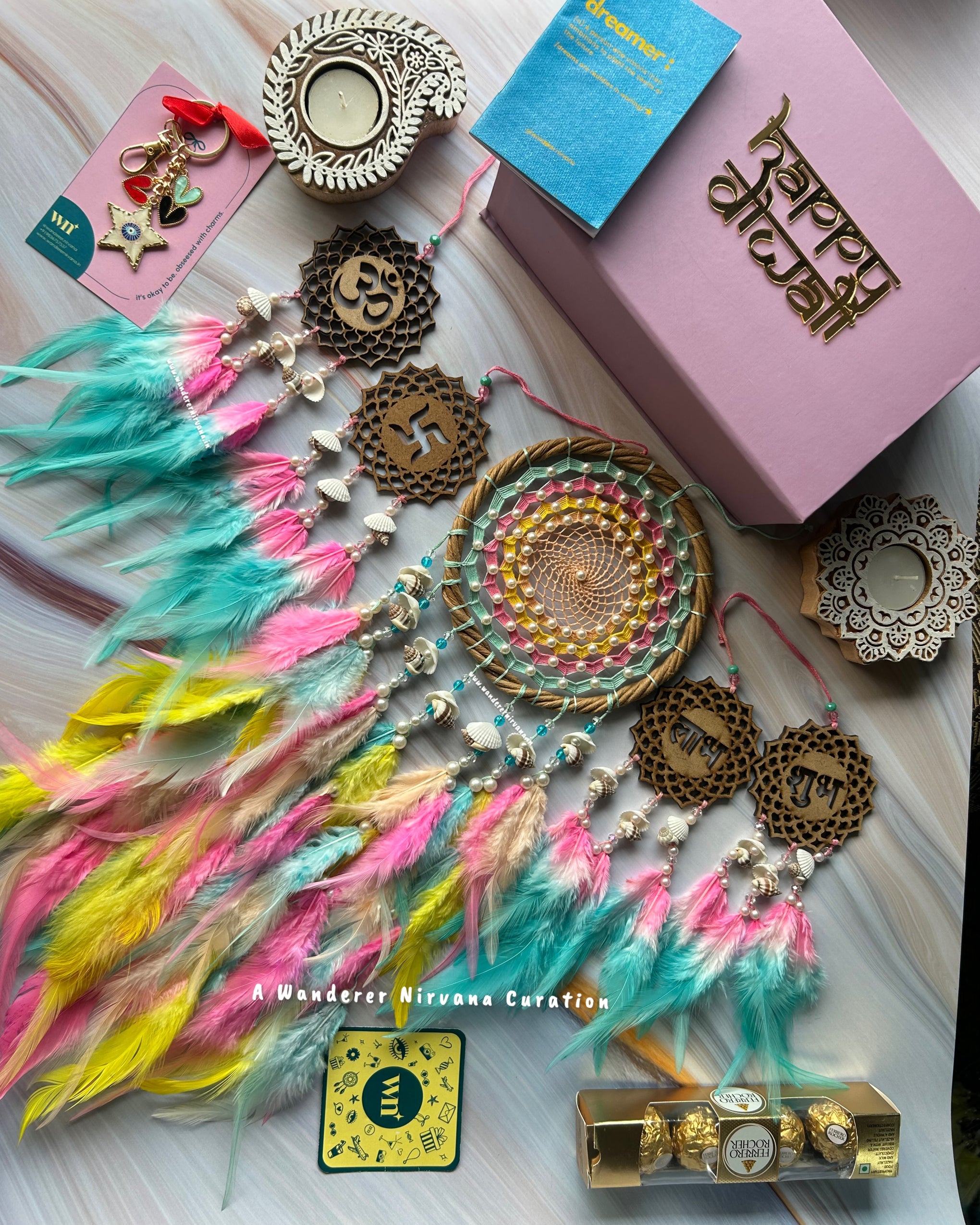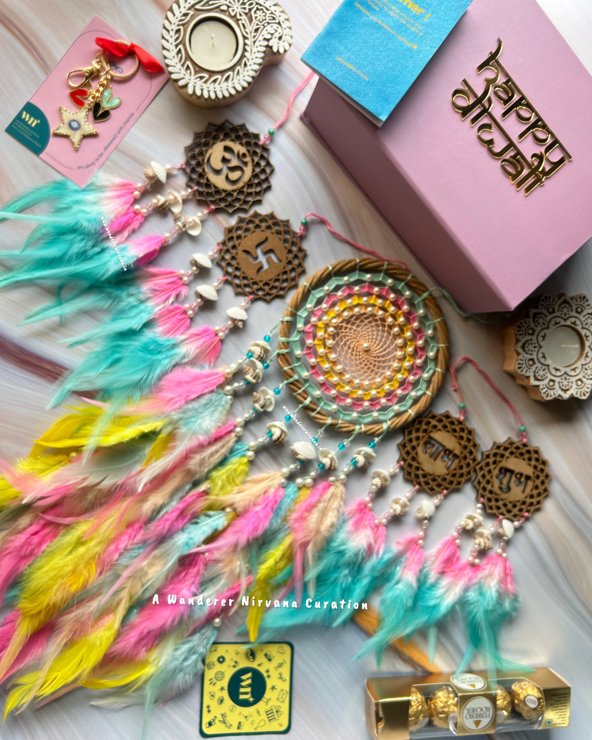 Wanderer Nirvana products are crafted using high-quality materials sourced from sustainable and ethical suppliers. Our dream catchers are made with artificial feathers, beads, and intricate weaving designs, while our keychains feature durable metals and vibrant accents.