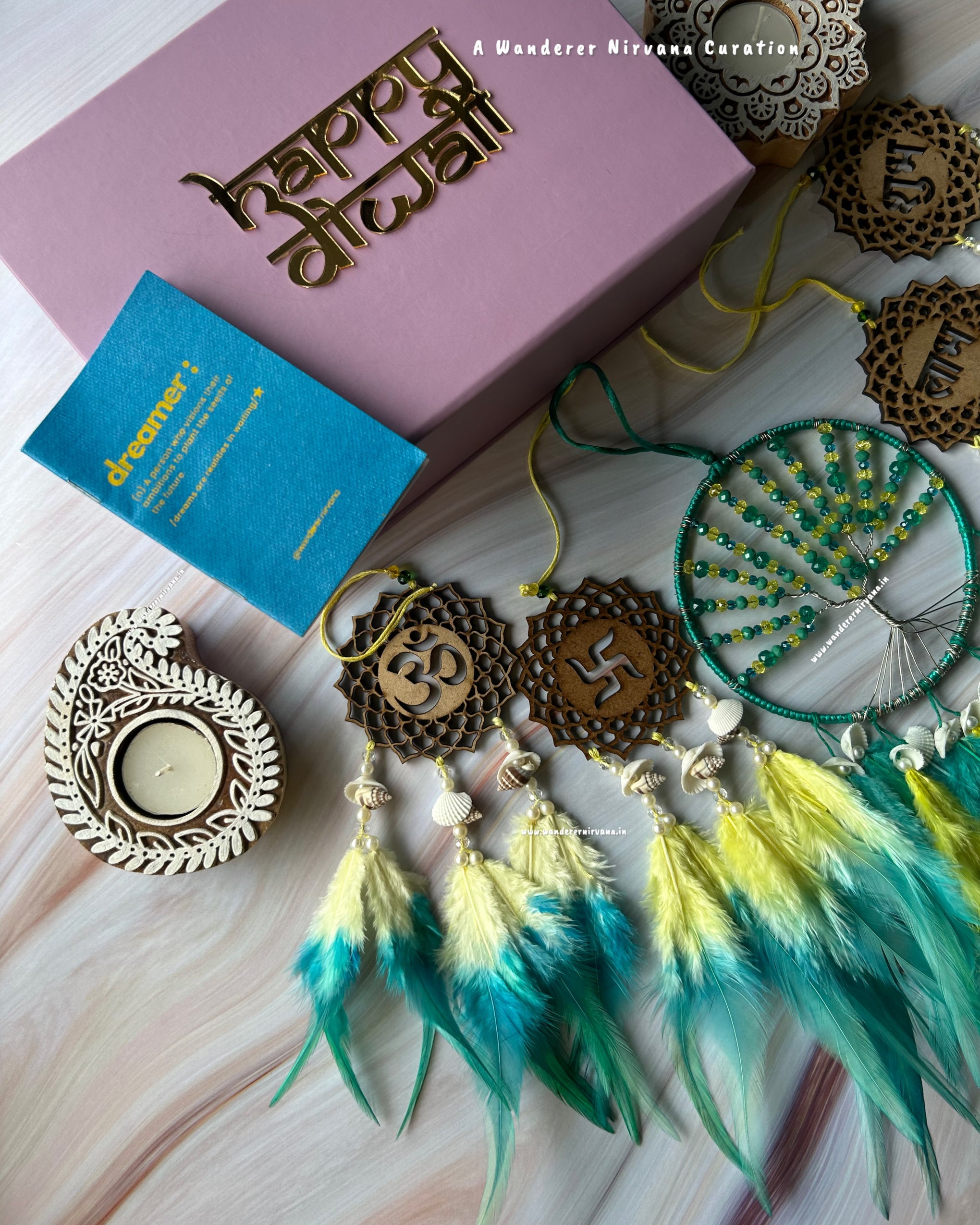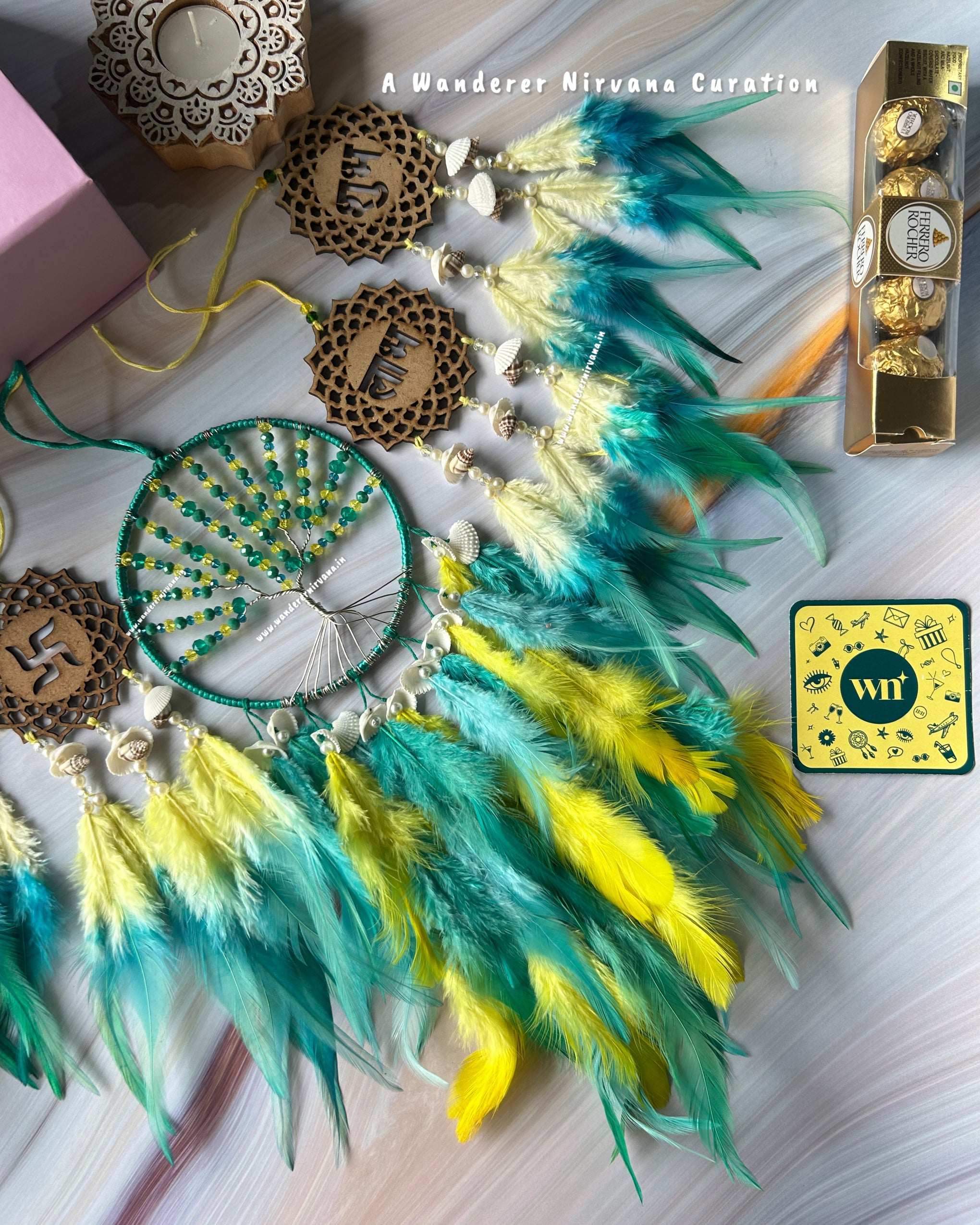 Wanderer Nirvana products are crafted using high-quality materials sourced from sustainable and ethical suppliers. Our dream catchers are made with artificial feathers, beads, and intricate weaving designs, while our keychains feature durable metals and vibrant accents.