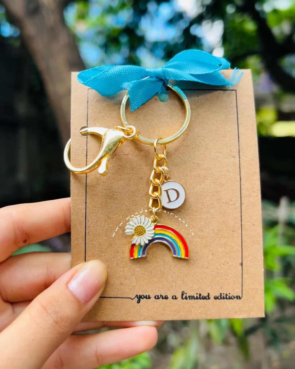 • Rainbow Keychain with Alphabet: Featuring bright colours and a personalised initial, this keychain adds a fun and customised element to the gift.