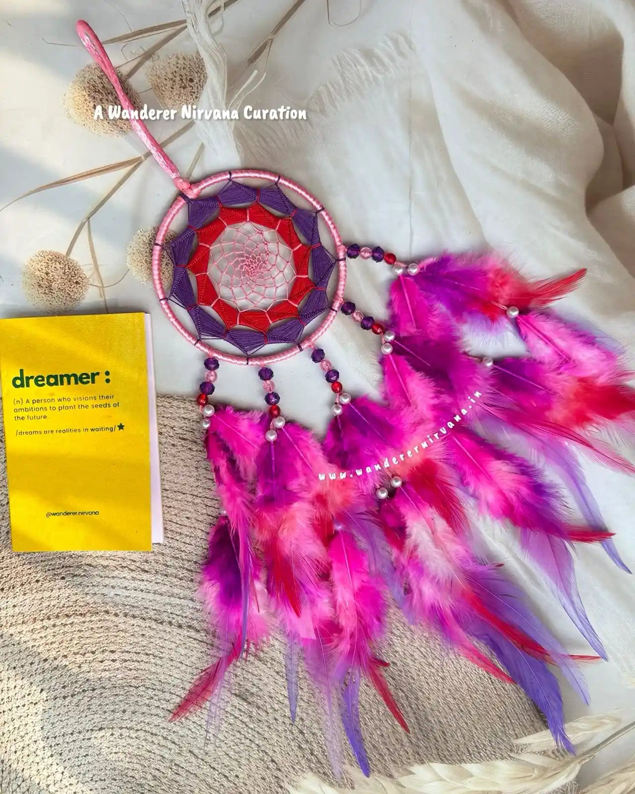 Wanderer Nirvana products are crafted using high-quality materials sourced from sustainable and ethical suppliers. Our dream catchers are made with artificial feathers, beads, and intricate weaving designs, while our keychains feature durable metals and vibrant accents.