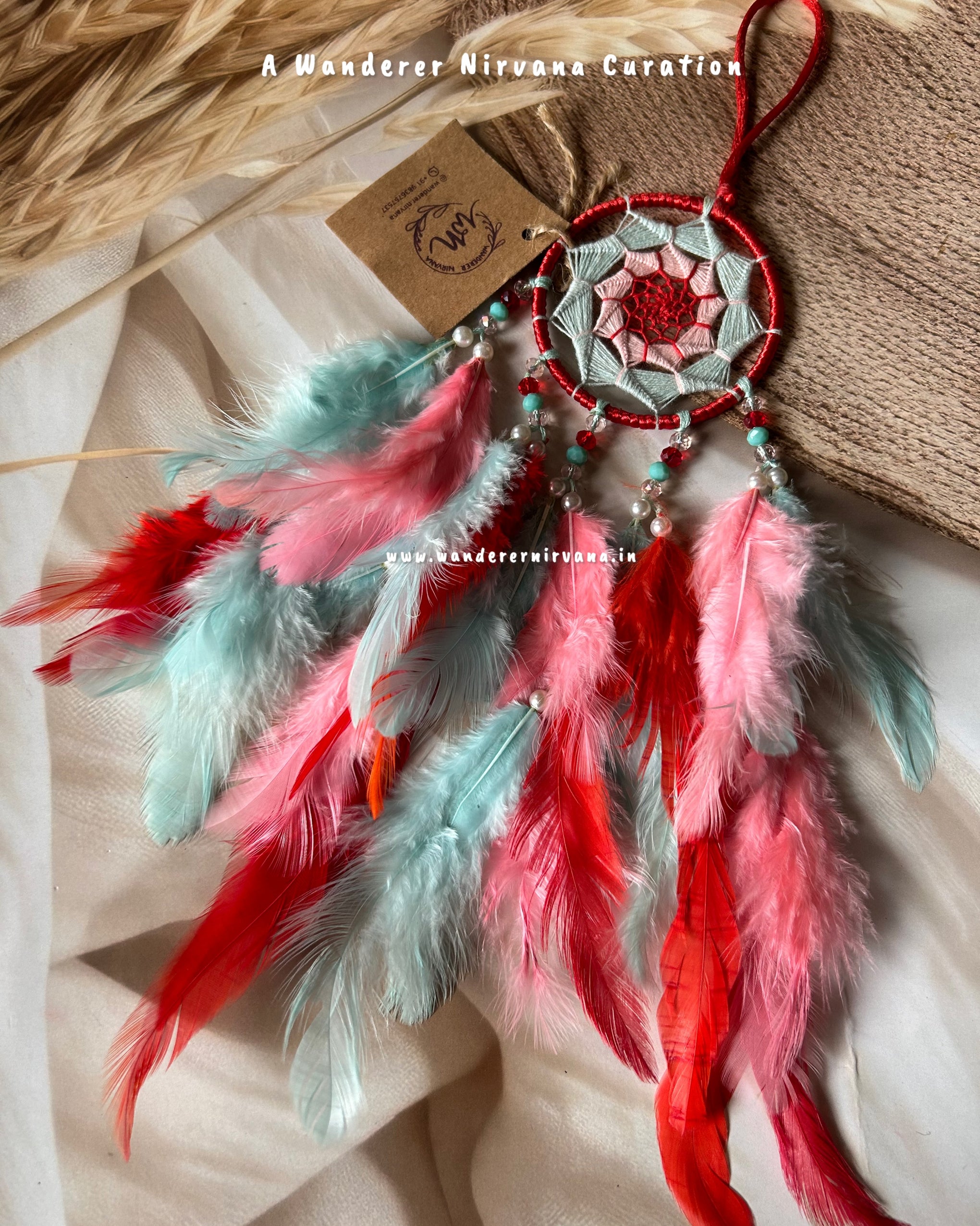 Wanderer Nirvana products are crafted using high-quality materials sourced from sustainable and ethical suppliers. Our dream catchers are made with artificial feathers, beads, and intricate weaving designs, while our keychains feature durable metals and vibrant accents.