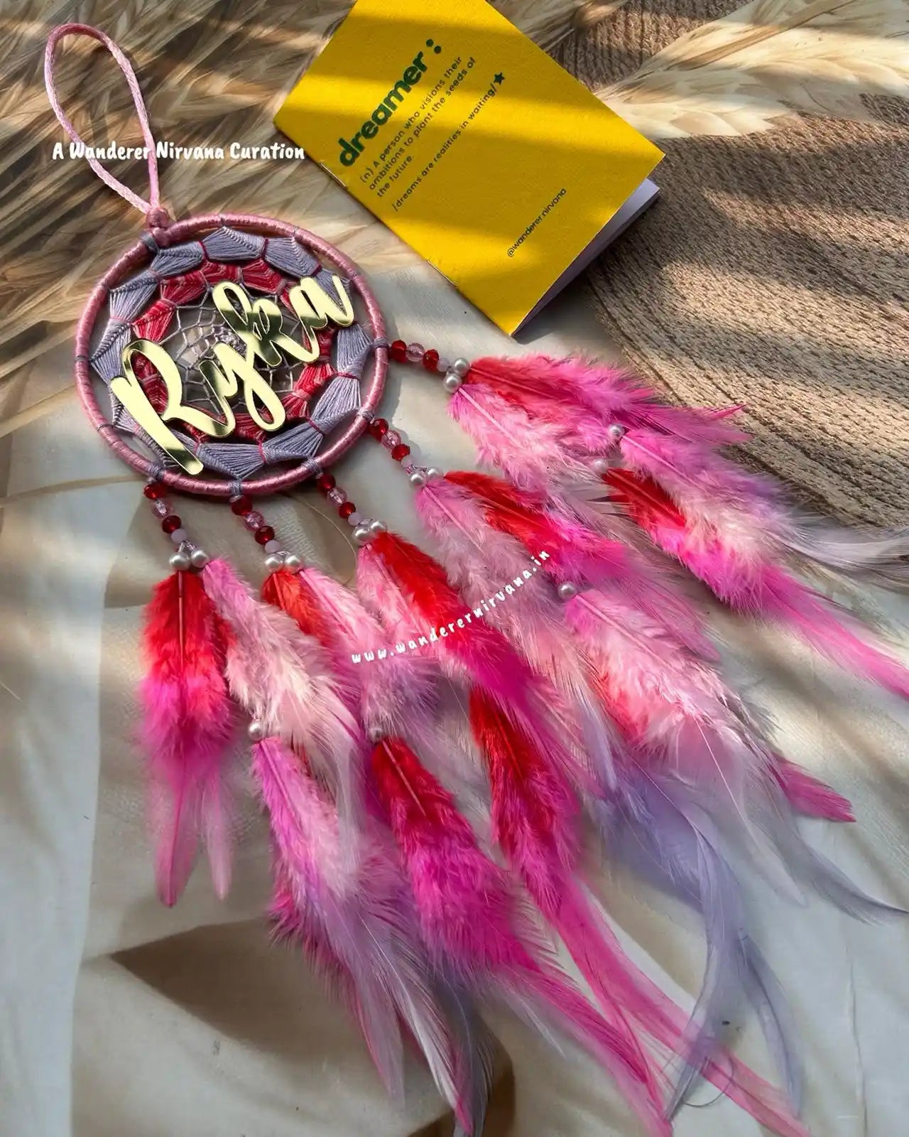 Wanderer Nirvana products are crafted using high-quality materials sourced from sustainable and ethical suppliers. Our dream catchers are made with artificial feathers, beads, and intricate weaving designs, while our keychains feature durable metals and vibrant accents.