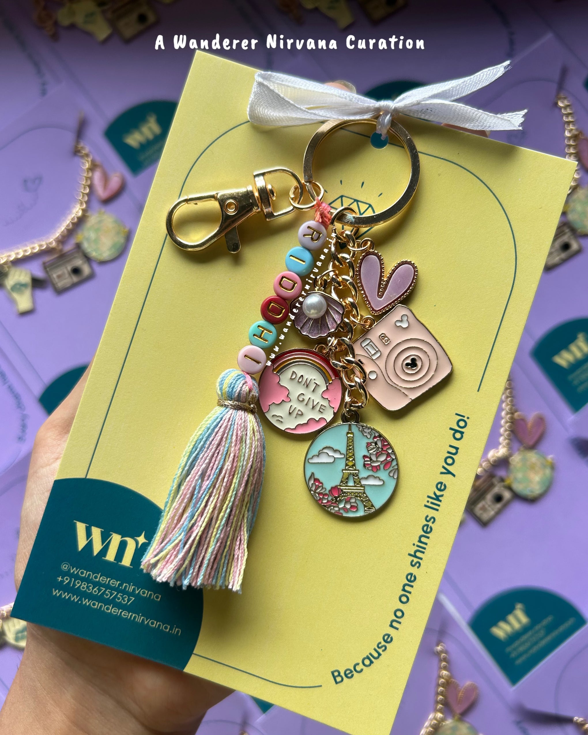 Wanderer Nirvana products are crafted using high-quality materials sourced from sustainable and ethical suppliers. Our dream catchers are made with artificial feathers, beads, and intricate weaving designs, while our keychains feature durable metals and vibrant accents.