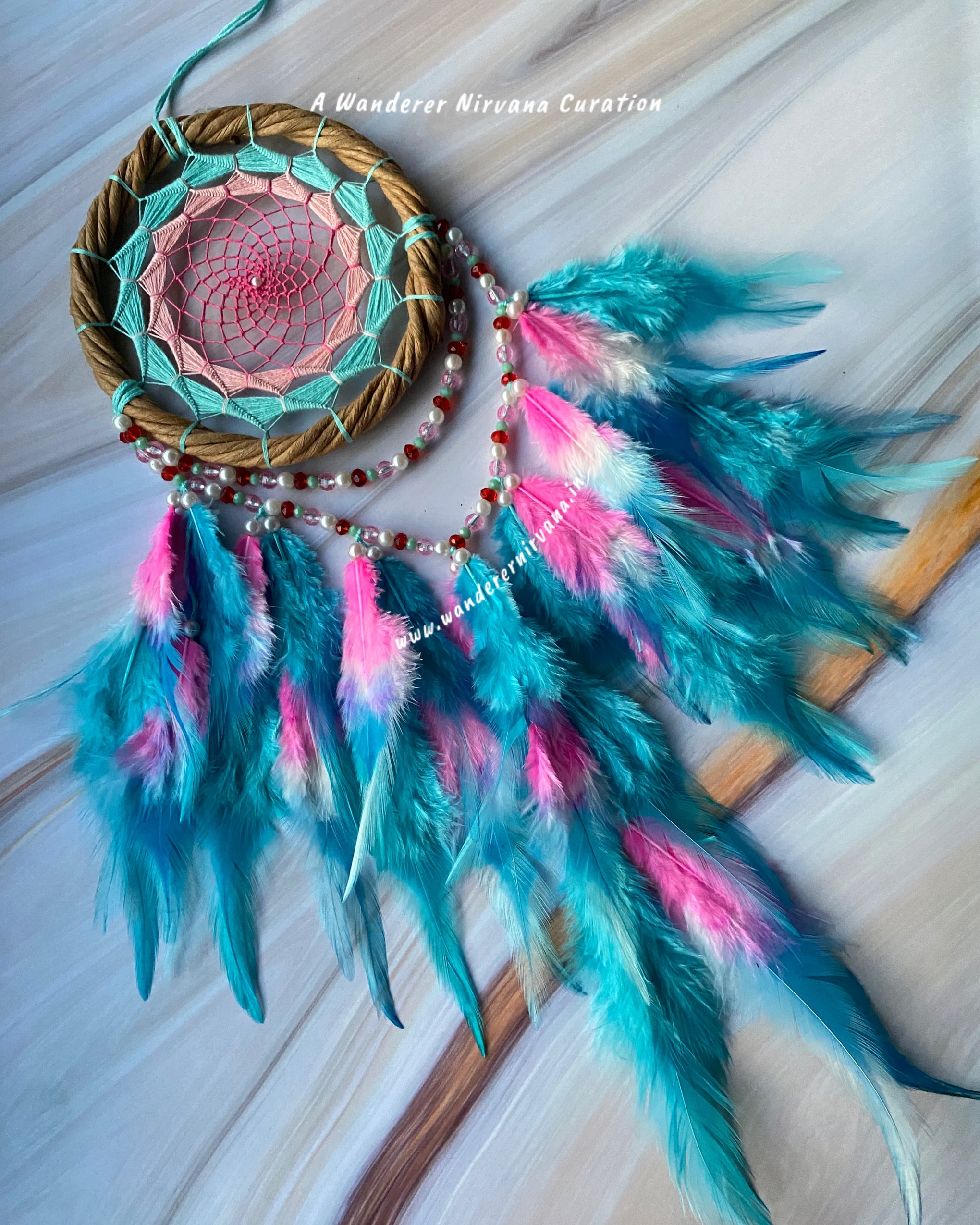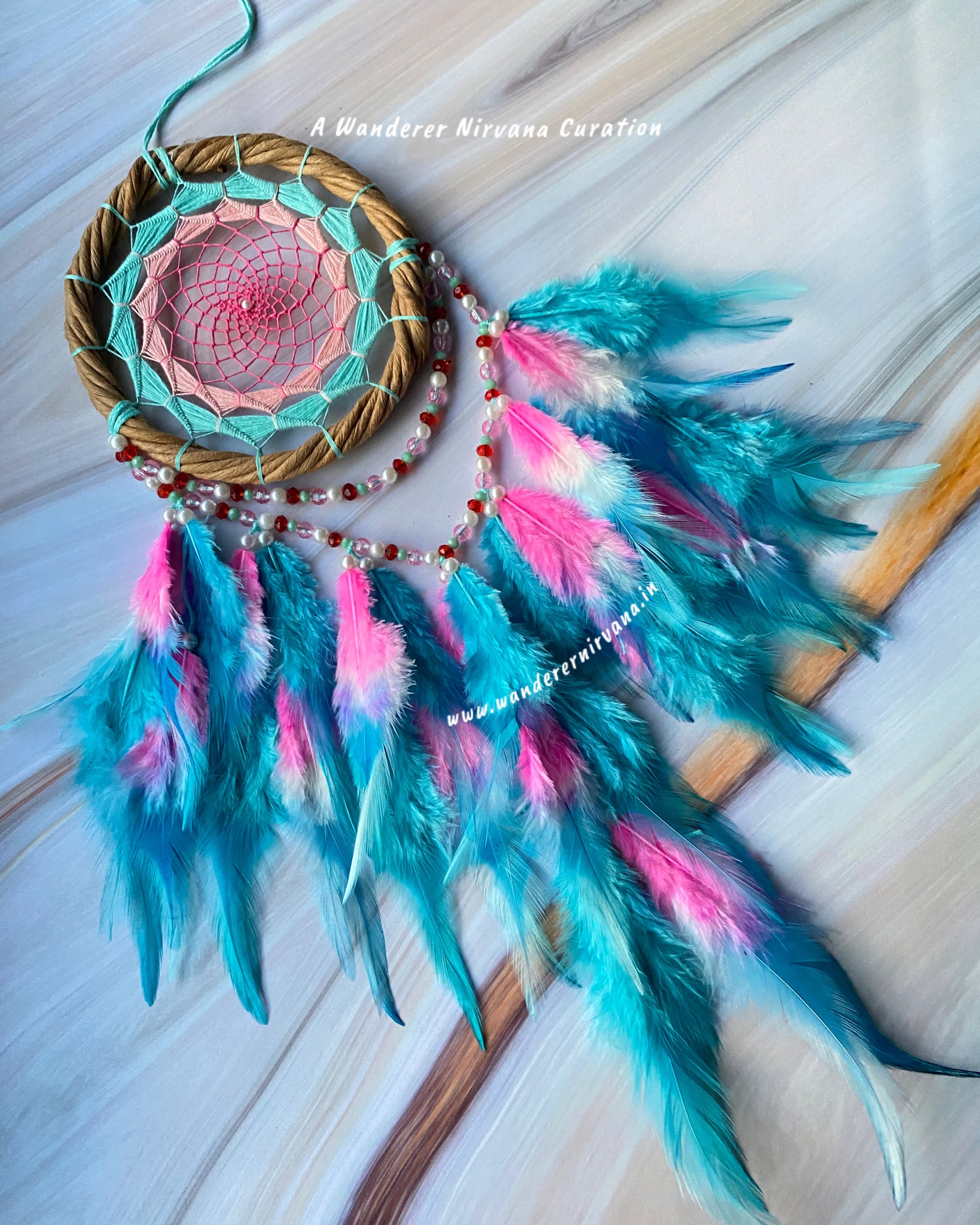 Wanderer Nirvana products are crafted using high-quality materials sourced from sustainable and ethical suppliers. Our dream catchers are made with artificial feathers, beads, and intricate weaving designs, while our keychains feature durable metals and vibrant accents.