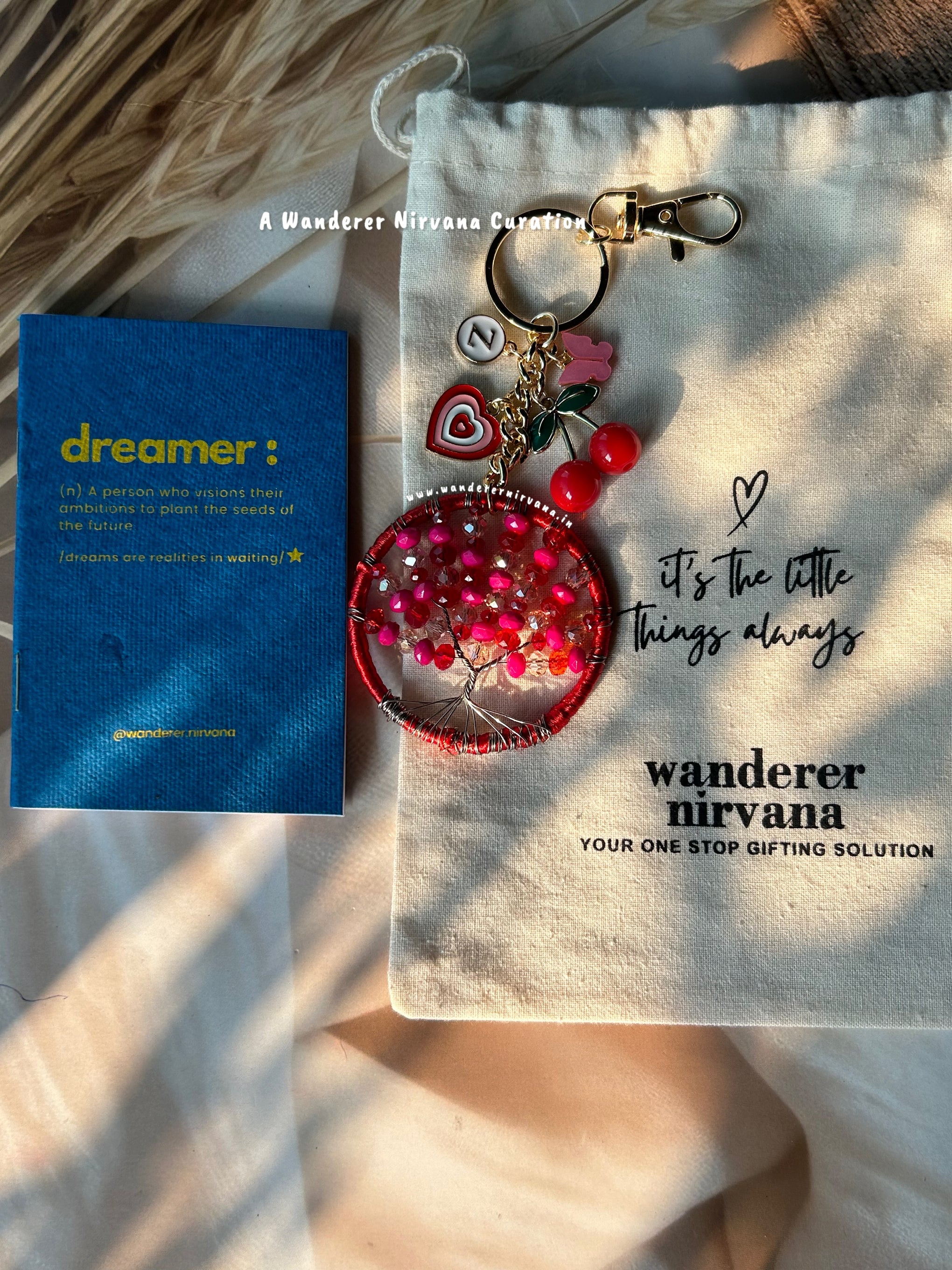 Wanderer Nirvana products are crafted using high-quality materials sourced from sustainable and ethical suppliers. Our dream catchers are made with artificial feathers, beads, and intricate weaving designs, while our keychains feature durable metals and vibrant accents.