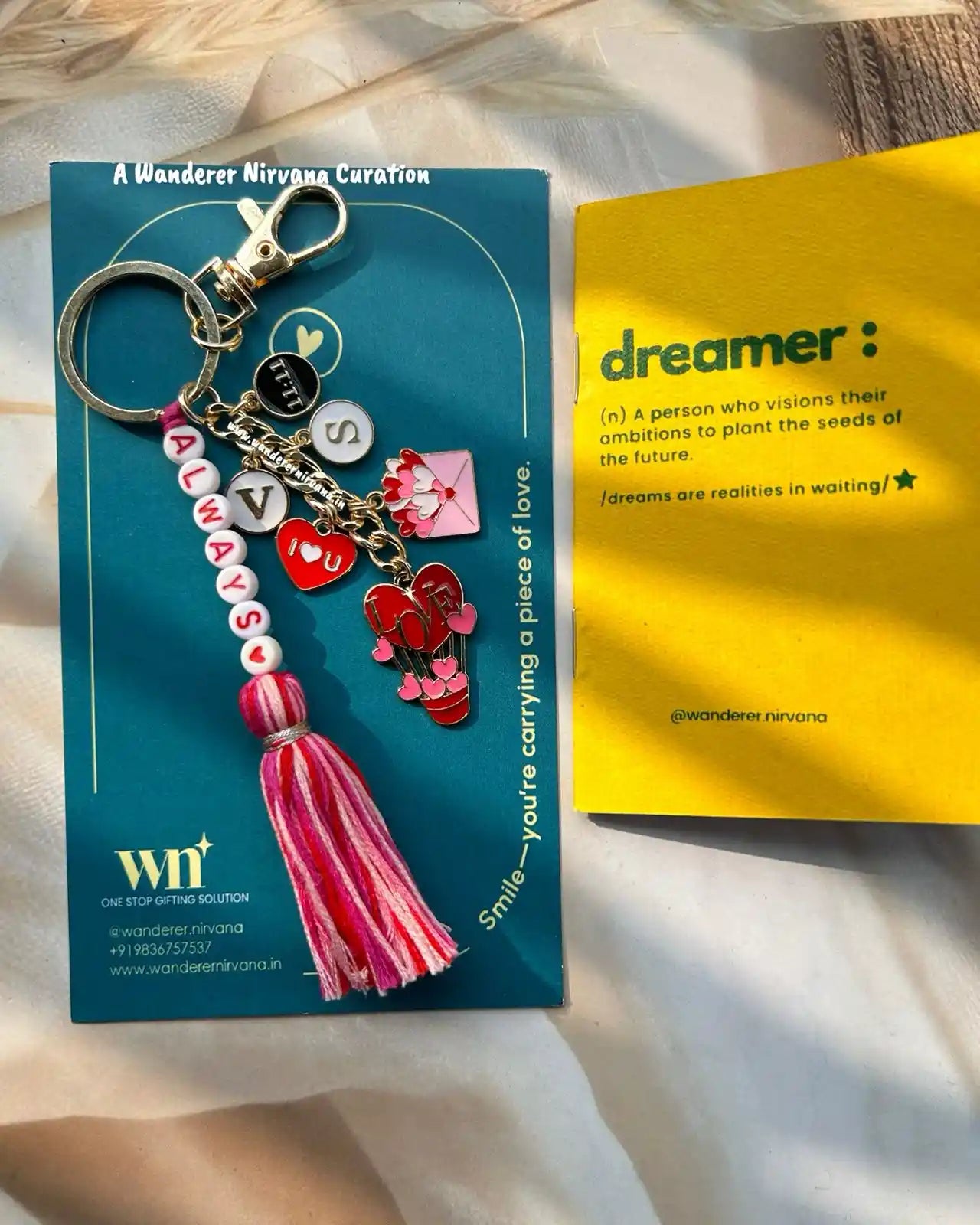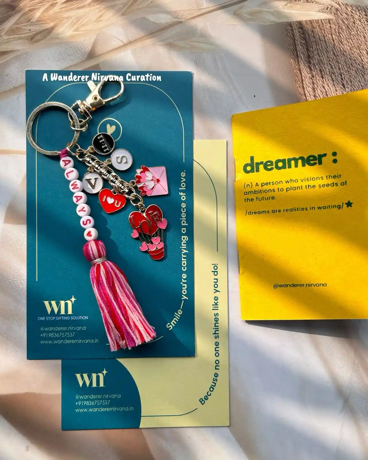 Wanderer Nirvana products are crafted using high-quality materials sourced from sustainable and ethical suppliers. Our dream catchers are made with artificial feathers, beads, and intricate weaving designs, while our keychains feature durable metals and vibrant accents.