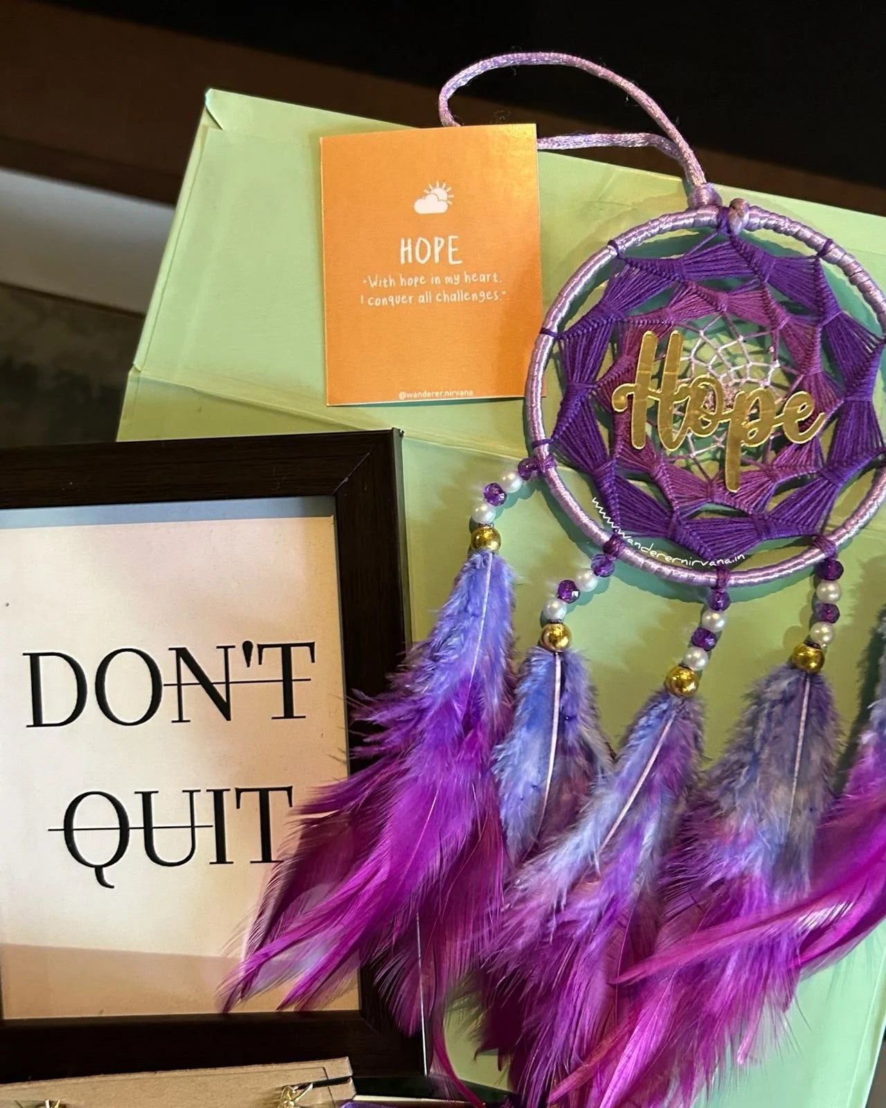 Wanderer Nirvana products are crafted using high-quality materials sourced from sustainable and ethical suppliers. Our dream catchers are made with artificial feathers, beads, and intricate weaving designs, while our keychains feature durable metals and vibrant accents.