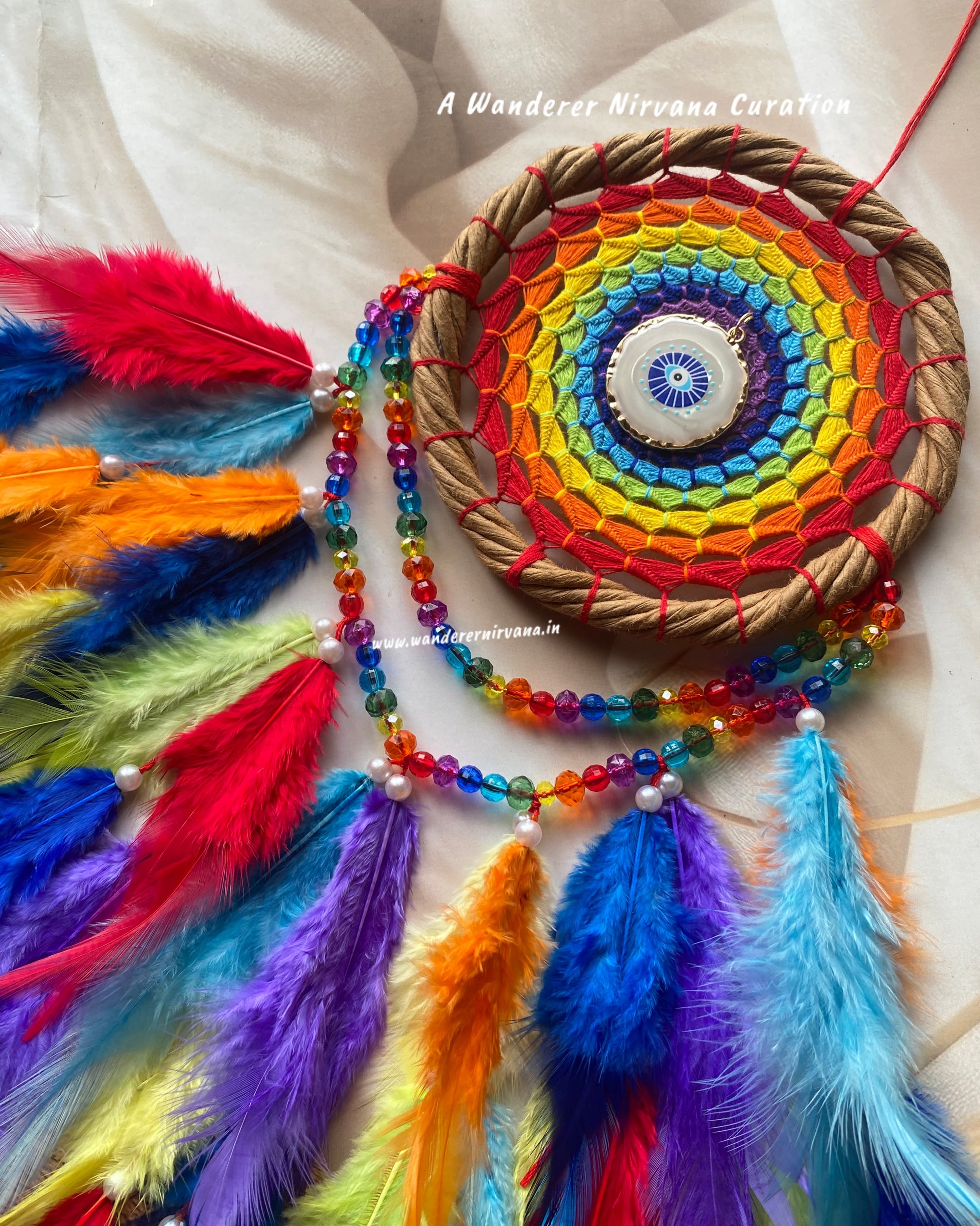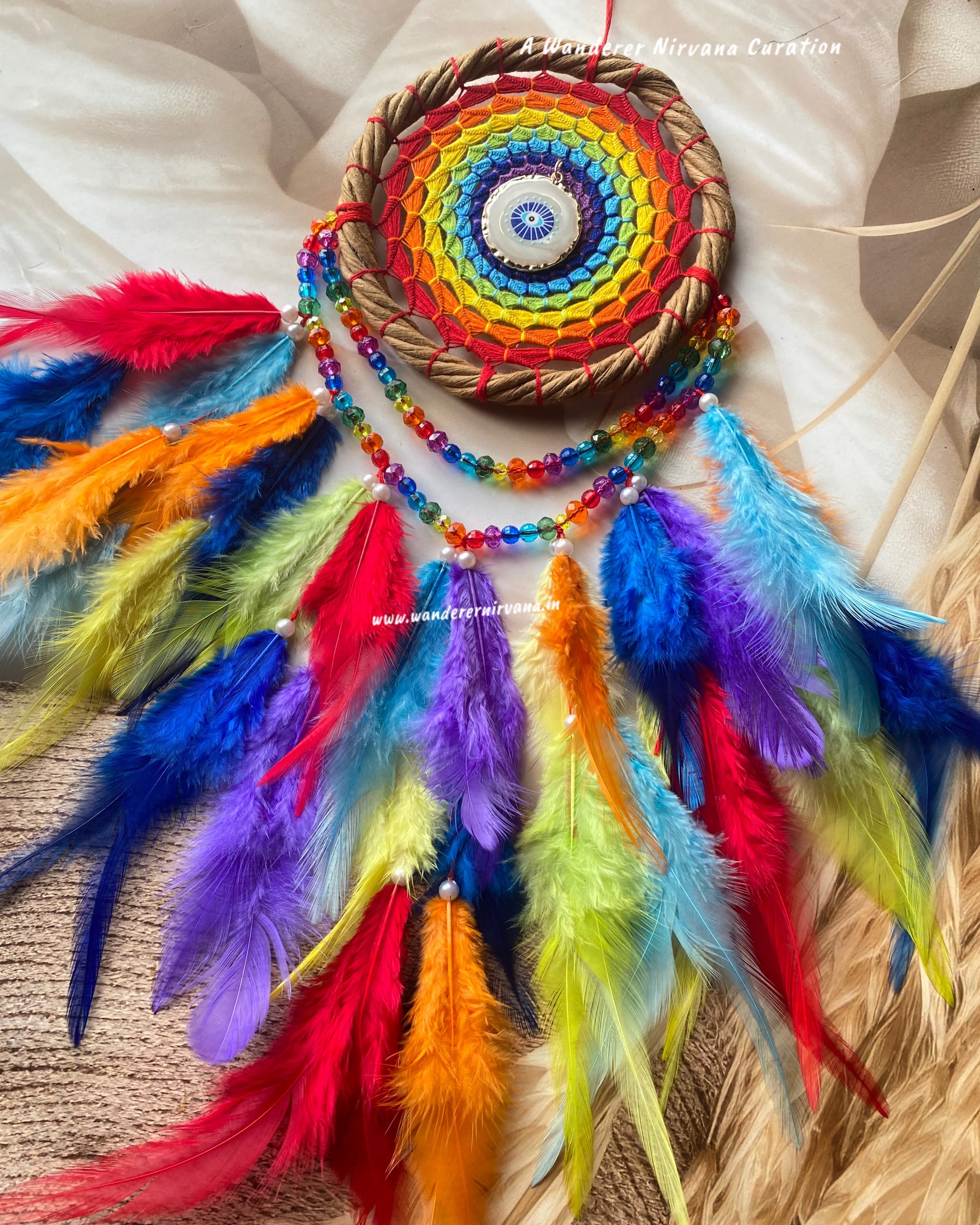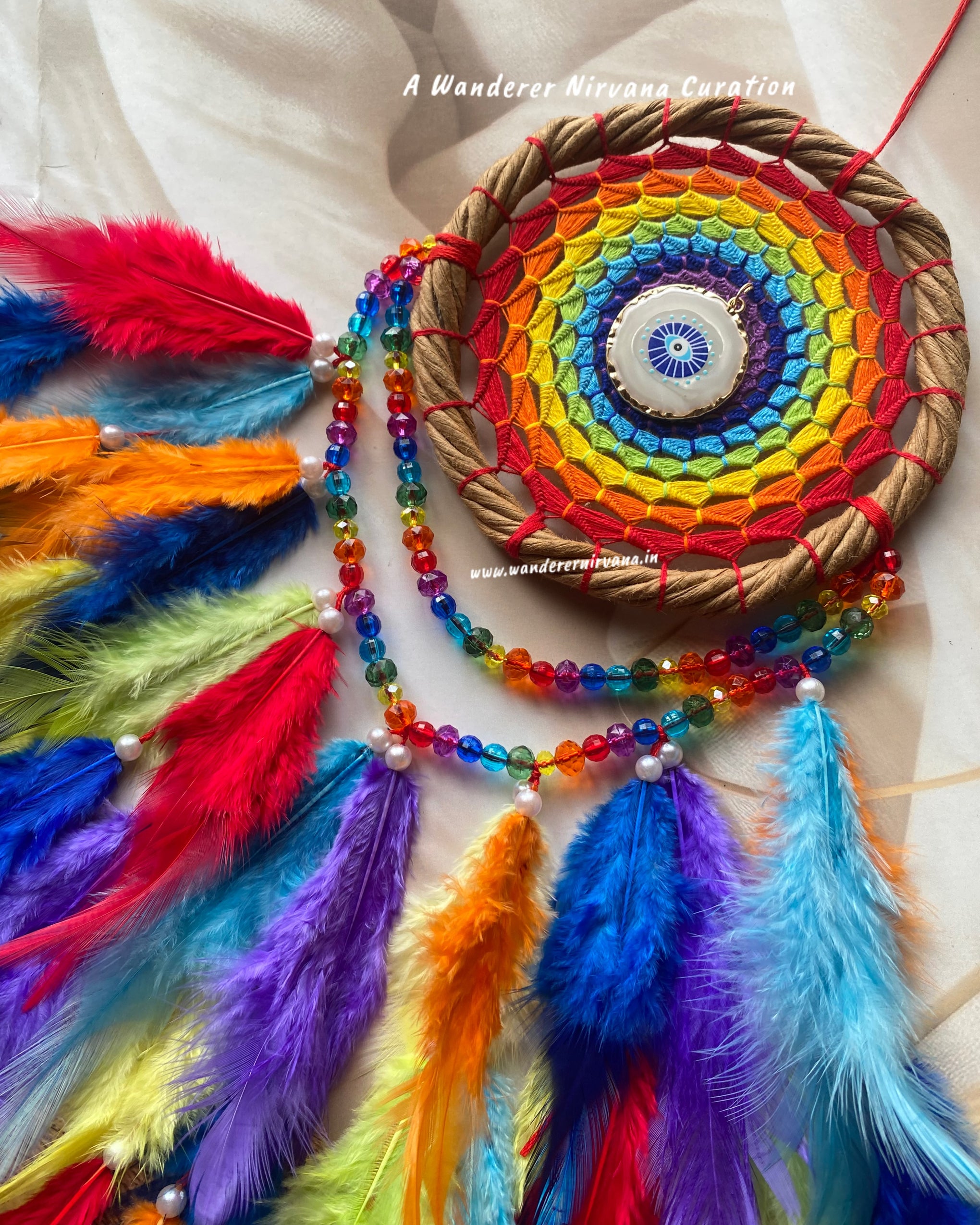 Wanderer Nirvana products are crafted using high-quality materials sourced from sustainable and ethical suppliers. Our dream catchers are made with artificial feathers, beads, and intricate weaving designs, while our keychains feature durable metals and vibrant accents.